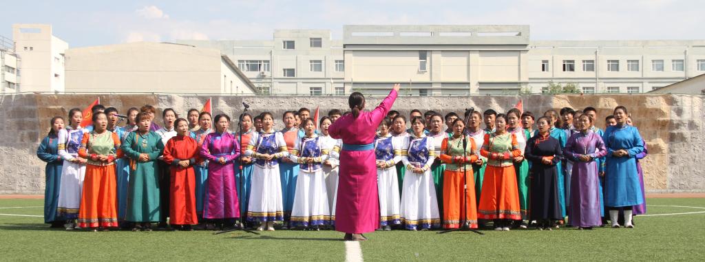 金沙990活动大厅腾飞艺术团现场带来精彩的民族舞表演,百灵鸟合唱团以大合唱的形式,集中展示了内科大师生“自强不息,敢为人先”的科大精神和积极向上的精神风貌。