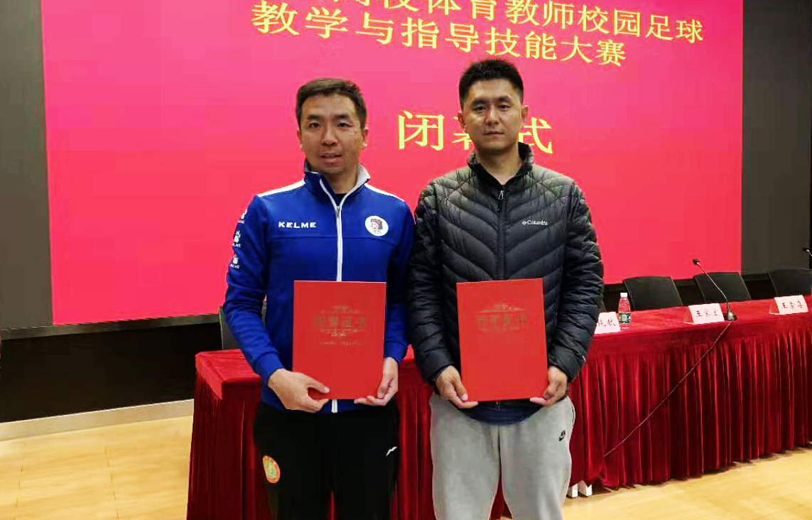 11月18日-20日,金沙990活动大厅体育教育部(足球学院)青年教工李建功、刘超赴南京参加首届全国高校体育教师校园足球教学与指导技能大赛。本届大赛由全国高等学校体育教学指导委员会主办,分为教学组和竞训组两个组别,来自全国171所高校教师、足球教练员共计200人参加比赛,经过说课、实践视频网络评审、技能技术测试三个环节,李健功、刘超分获教学组二等奖和竞训组二等奖的优异成绩。