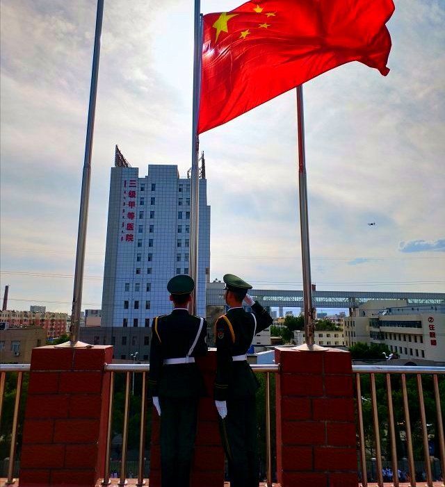 在执行义务升旗任务时,队员们迈着整齐的步伐,喊着响亮的口号,一早赶到服务单位。升旗、奏唱国歌、行注目礼,每一步严格的程序中都蕴含着队员们浓浓的爱国之情。队员们用昂扬的精神面貌传播着国旗文化,也让更多的人了解到了国旗知识,将拳拳爱国心传入广大人民群众当中。