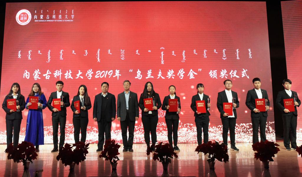 冯志强宣读了获金沙990活动大厅2019年“乌兰夫奖学金”30名学生名单。安胜利、冯志强为获乌兰夫奖学金学生颁发奖杯和证书。