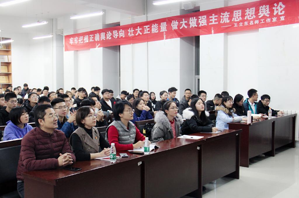 为创新开展思想政治教育,积极拓展校园文化建设,12月10日晚,金沙990活动大厅2018年获批的首批“内蒙古高校思想政治工作名师工作室”王立东工作室和靳秀兰工作室协作举办的名师工作室“开讲啦”系列讲座正式开讲,第一讲由金沙990活动大厅教授、硕士生导师王立东主讲。各学院党员代表、入党积极分子代表聆听了讲座。