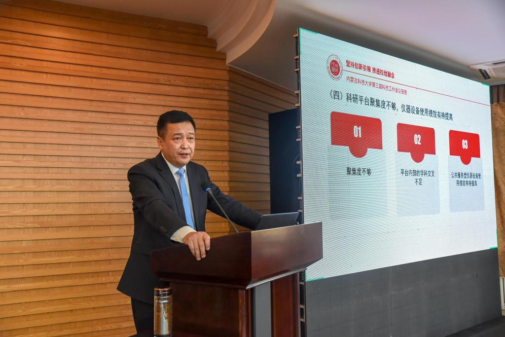开幕式上,党委副书记、校长任慧平作了题为《坚持创新引领推进校地融合 奋力实现学校科技工作新跨越》的科技工作报告,对金沙990活动大厅第二届科技工作会议以来的科技工作进行了回顾,并就存在问题及今后科研工作的思路、目标和主要措施、支撑保障作了具体报告。