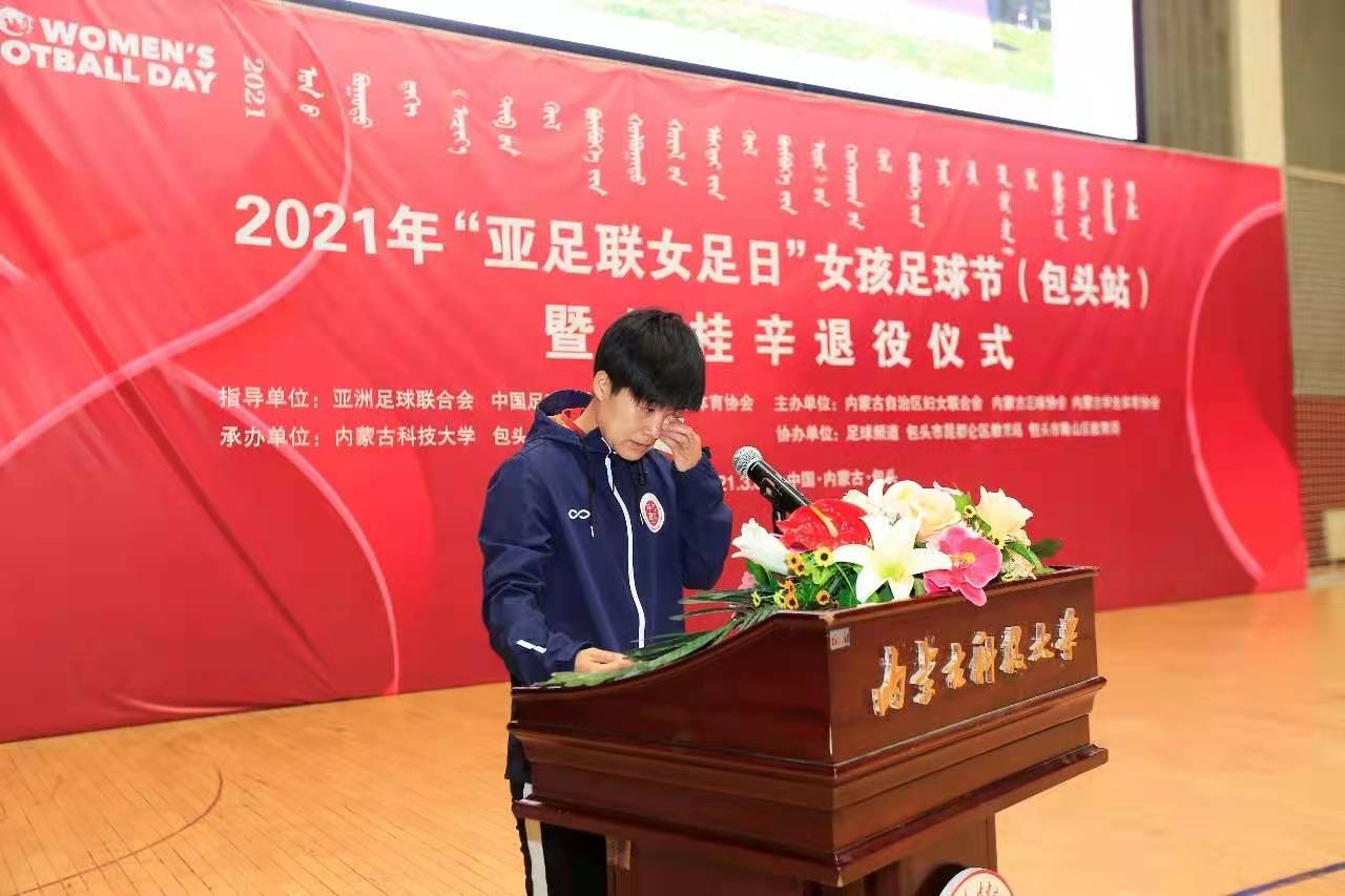 活动中,包钢二十六小的女足队员张檬丹上台发言,以任桂辛为榜样,表达了对于足球的热爱之情,展示了少年勇敢逐梦、期待为祖国争光的伟大愿望。