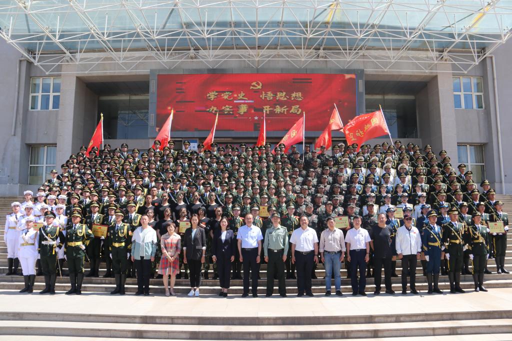 会操表演结束后,军地负责人为参演高校国旗护卫队举行了颁奖仪式并合影留念。