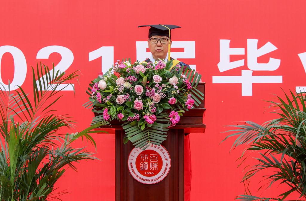 党委副书记、校长任慧平代表学校向学业有成、即将踏上新的人生征途的2021届毕业生们表示最衷心的祝贺,向为同学们成长成才付出汗水、心血和智慧的各位老师表示崇高的敬意,向不辞辛劳、陪伴着同学们成长的父母表示真诚的感谢!希望2021届毕业生们能够认真梳理学习收获,整理行装再出发;强化综合素质培养,锤炼自身本领;深刻把握时代变革,砥砺奋斗前行。他寄语毕业生们,无论时光多么久远,母校永远知你冷暖,懂你悲欢!让母校的牵挂陪你们走遍天涯海角,让母校的祝福伴你们扬帆远航!