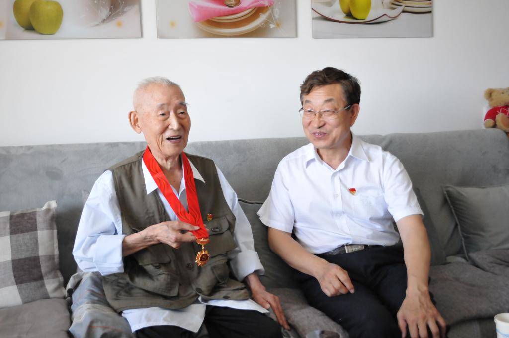 6月29日,校领导看望了抗日老兵、80年党龄、95岁高龄的赵永科同志,安胜利为赵永科同志佩戴了“光荣在党50年”纪念章,转达了校党委对赵永科同志的关心和慰问,详细询问了他的身体、生活情况,对他为党的伟大事业作出的卓越贡献表示敬意、为学校发展的辛勤付出表示感谢。赵永科老人深情地回顾了抗日战争时期加入革命队伍的峥嵘岁月。作为一名有着80年党龄的老共产党员,赵永科一直对党怀有深厚的感情。他表示纪念章代表的是党和国家对老党员的认可和信任,为党的百年成就感到骄傲自豪,要继续发扬党的光荣传统,关心党和国家的发展,关心学校的发展,为党的事业继续做出贡献。