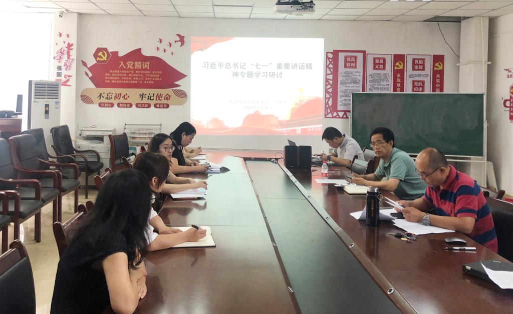 7月14日上午,围绕学习贯彻习近平总书记在庆祝中国共产党成立100周年大会上的讲话精神,各基层党委、党总支理论学习中心组在分会场进行了集中学习研讨和学习交流,校领导纷纷来到分管单位或联系学院参加了学习研讨。
