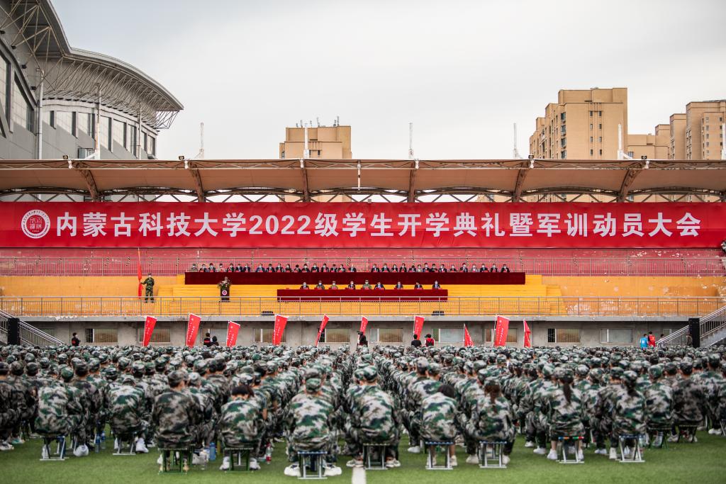9月9日下午,金沙990活动大厅2022级新生开学典礼暨军训动员大会在西校区田径场举行。包头军分区动员处处长鲁元福上校、昆区人民武装部政委张峻葆上校、武警包头支队副政委董海川中校,校领导成涛、任慧平、冯志强、杨建林、檀宝文参加典礼。