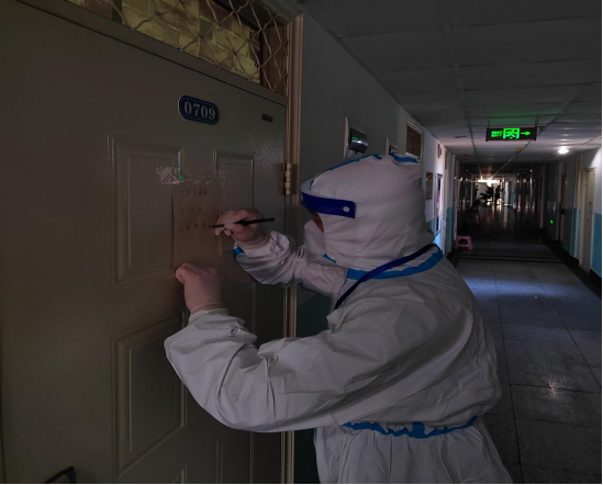 在学校静默管控期间,临时党支部成员与各楼层志愿者、保洁人员等竭尽全力为同学们提供生活保障。统一分餐,把一日三餐送到学生的房间,出色完成全楼3100余名学生饮食工作。不断探索便捷的工作方法,如在宿舍门上记录用餐人员人数、细心统计学生用餐禁忌情况、仔细调查特殊用餐用餐需求,妥善处理寝室餐后垃圾等,他们用真诚的服务感染同学,用实际的行动彰显志愿精神本色。