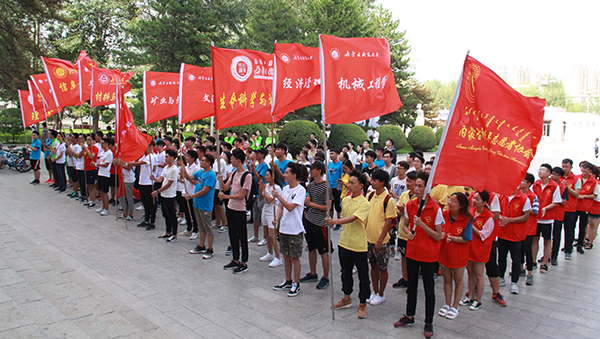 金沙990活动大厅2018年大学生志愿者暑期“三下乡”和“十个一”社会实践活动出征